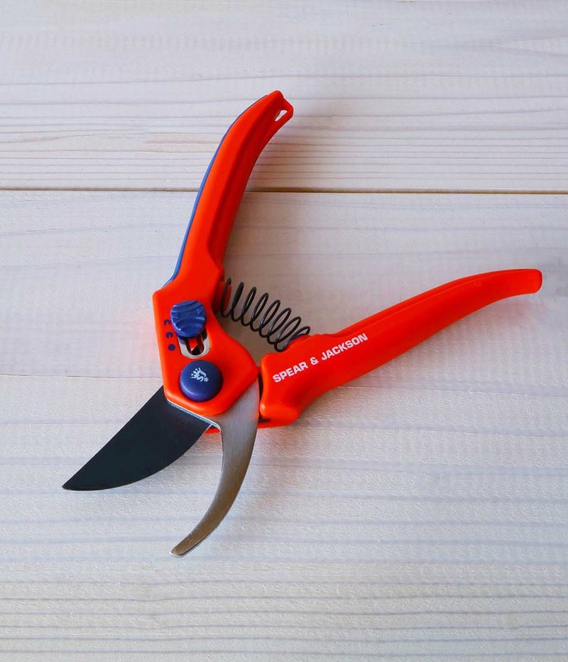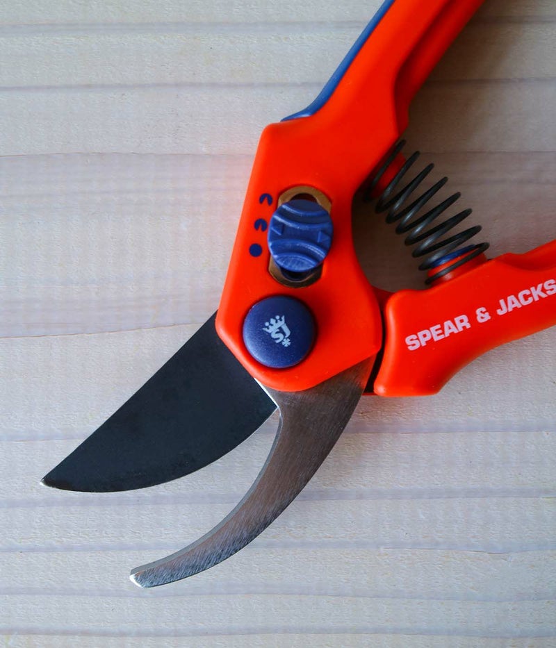 シャープなステンレス刃と、持ちやすいソフトグリップで人気のSJの剪定ハサミ。