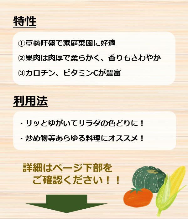 カロチン、ビタミンCが豊富で、サラダの色どりに、又、炒めものなどあらゆる料理に適します。