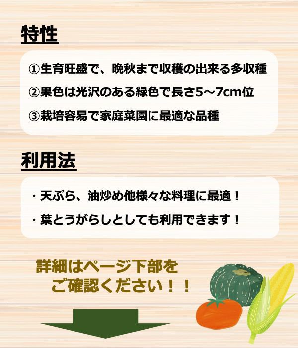 果肉はやわらかく辛味も無いので天ぷら、油炒め他様々な料理に利用出来ます。