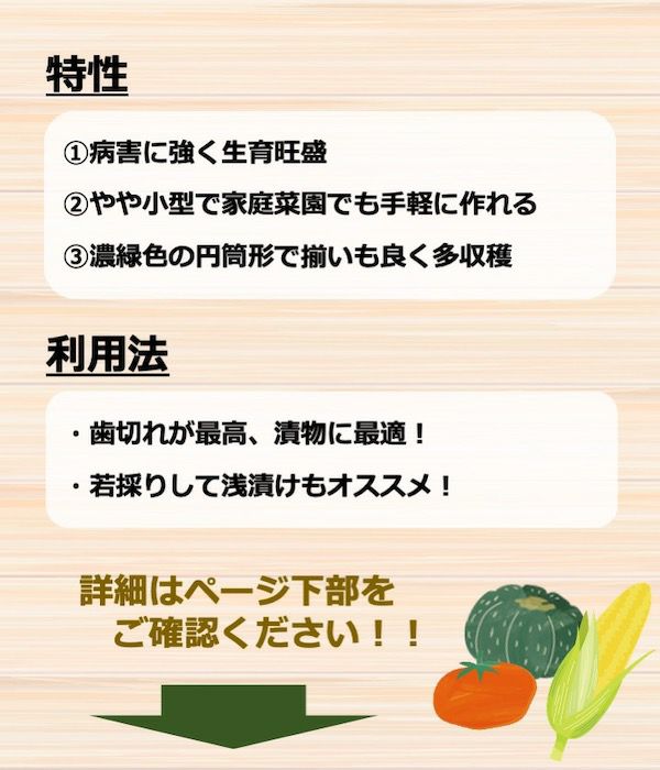 病害に強く生育旺盛、作り易いやや小型の漬瓜で家庭菜園でも手軽に作れます。