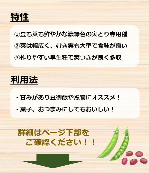 豆も莢も鮮やかな濃緑色の実とり専用種です。