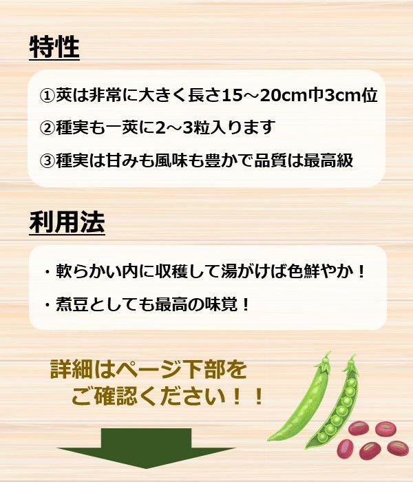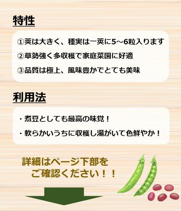 一莢に5~6粒入りの大長タイプ。生育旺盛