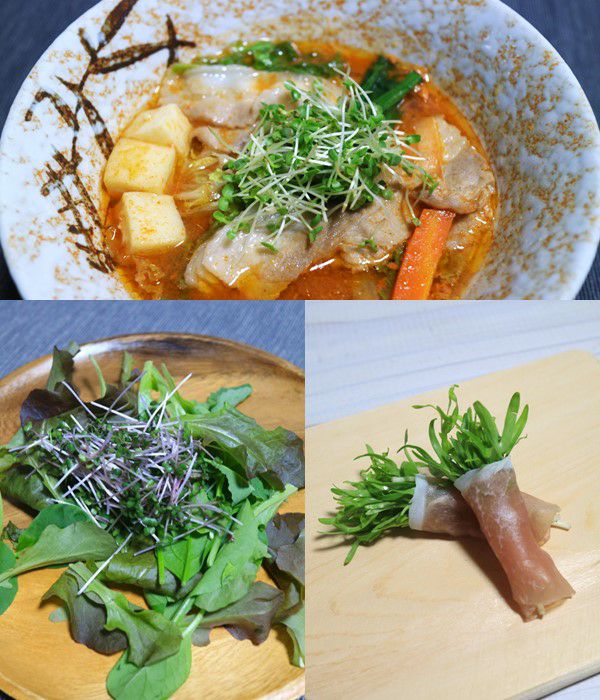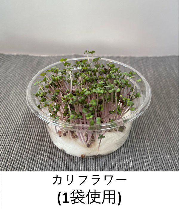 その中でも、あまりスプラウトとして出回っていない「金ごま」「カリフラワー」「エンサイ(空心菜)」をセットにしました。