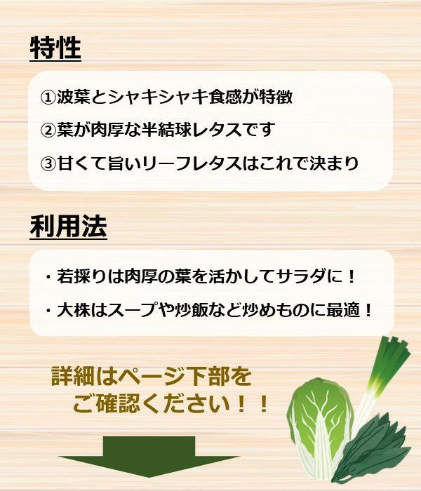 他の画像を見る 固定種 オリジナル シャキシャキなリーフレタス アサヒ育成 パパっとシリーズ★元気レタス(リーフレタスの種)(コート種子) 当店特別価格 ¥ 407 税込 在庫切れ 詳細を見る お気に入りに登録する