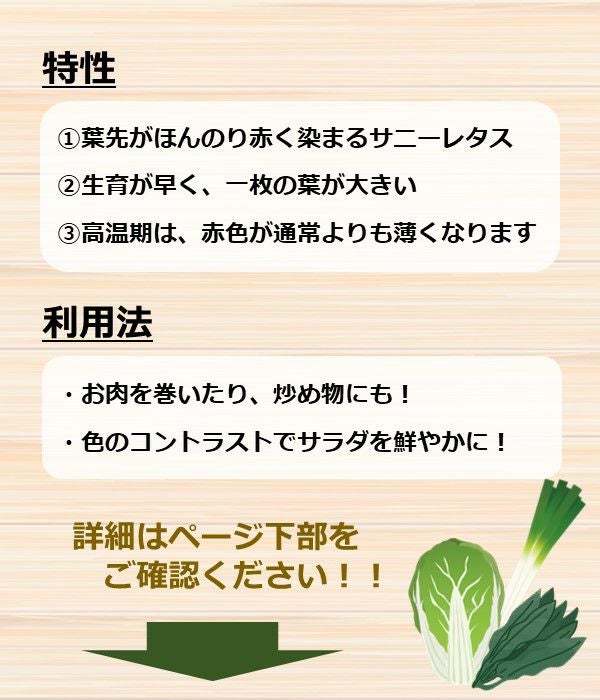他の画像を見る 固定種 オリジナル サラダにぴったり、色鮮やかサニーレタス アサヒ育成 レッドサンスター(リーフレタスの種)(コート種子) 当店特別価格 ¥ 330 税込 詳細を見る お気に入りに登録する