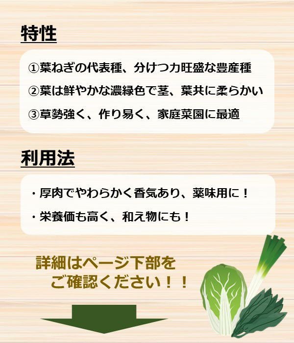葉ねぎの代表種、分けつ力旺盛で3~4本となる豊産種。