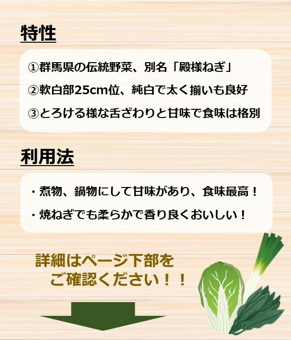 煮物、鍋物にして甘味があり、食味最高。又、焼ねぎとしてもやわらかくて香りも良くたいへん美味です。