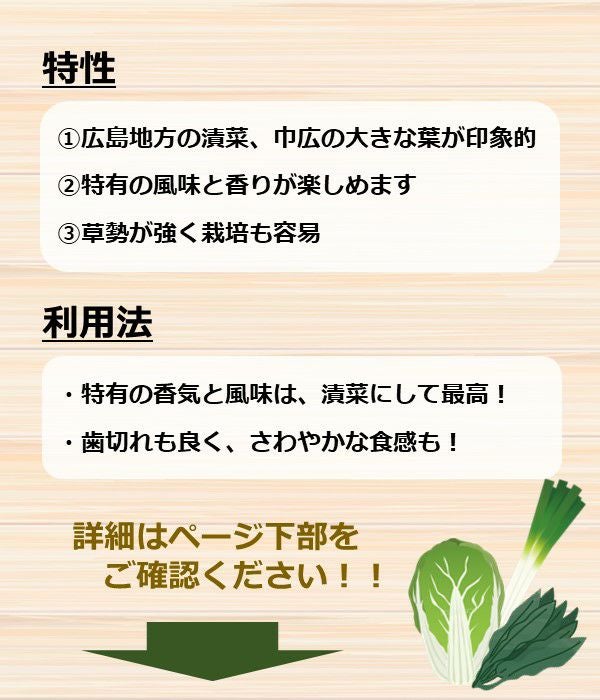 広島地方の漬菜で極めて巾の広い大きな葉が印象的。