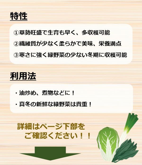 特に寒さに強く緑野菜の少なくなる冬期に収穫が楽しめます。