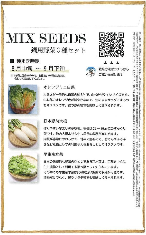 他の画像を見る NEW オリジナル アサヒ農園オリジナル お買い得中華野菜3種セット 中華野菜3種セット 【MIX SEEDシリーズ】 当店特別価格 ¥ 550 税込 在庫切れ 詳細を見る お気に入りに登録する