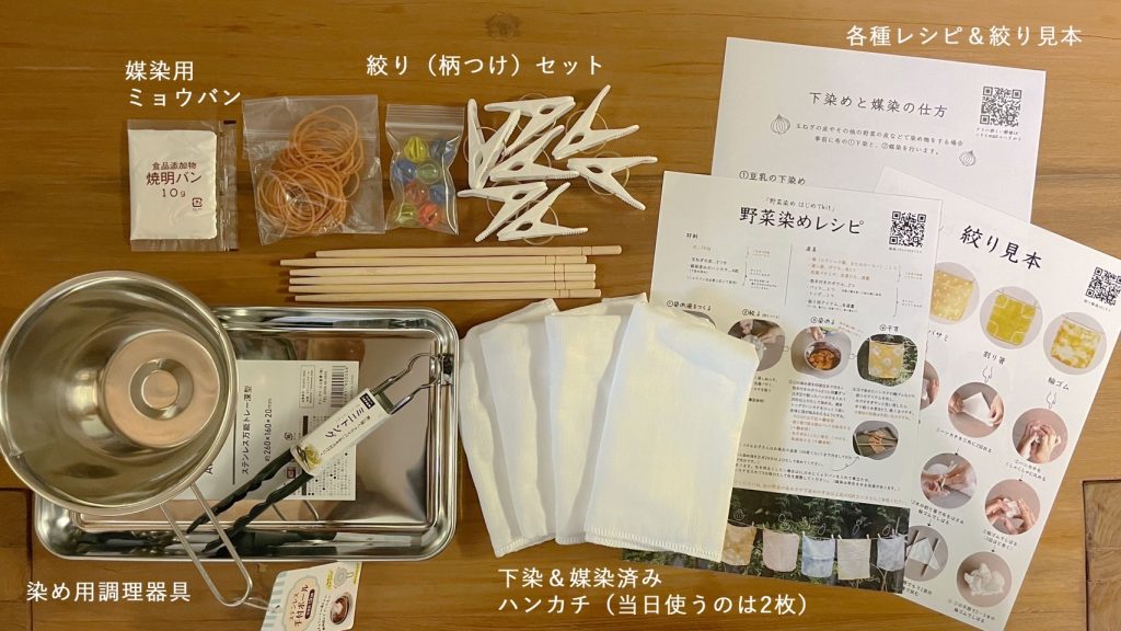 ※事前に「下染め済みハンカチ+染めキット一式」をお送りします。