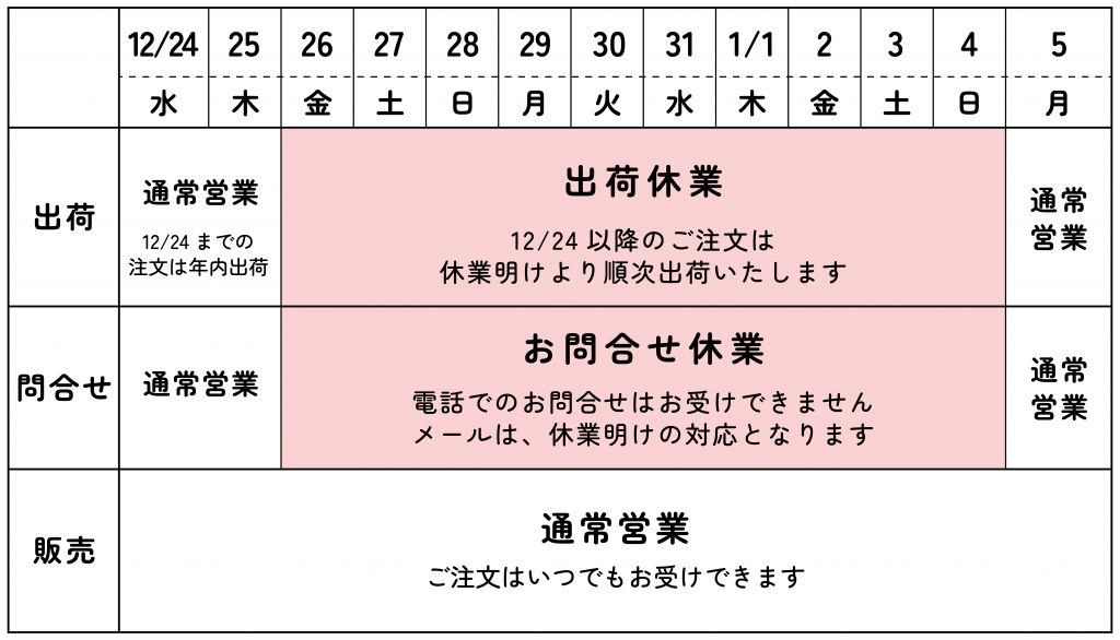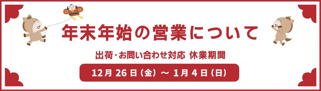 年末年始の営業についてのお知らせ【年内出荷は12/24ご注文分まで】
