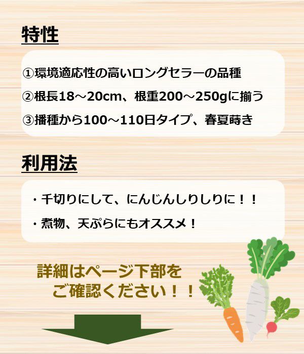 肉付き良好な早生豊産種。色鮮やかなおいしい人参